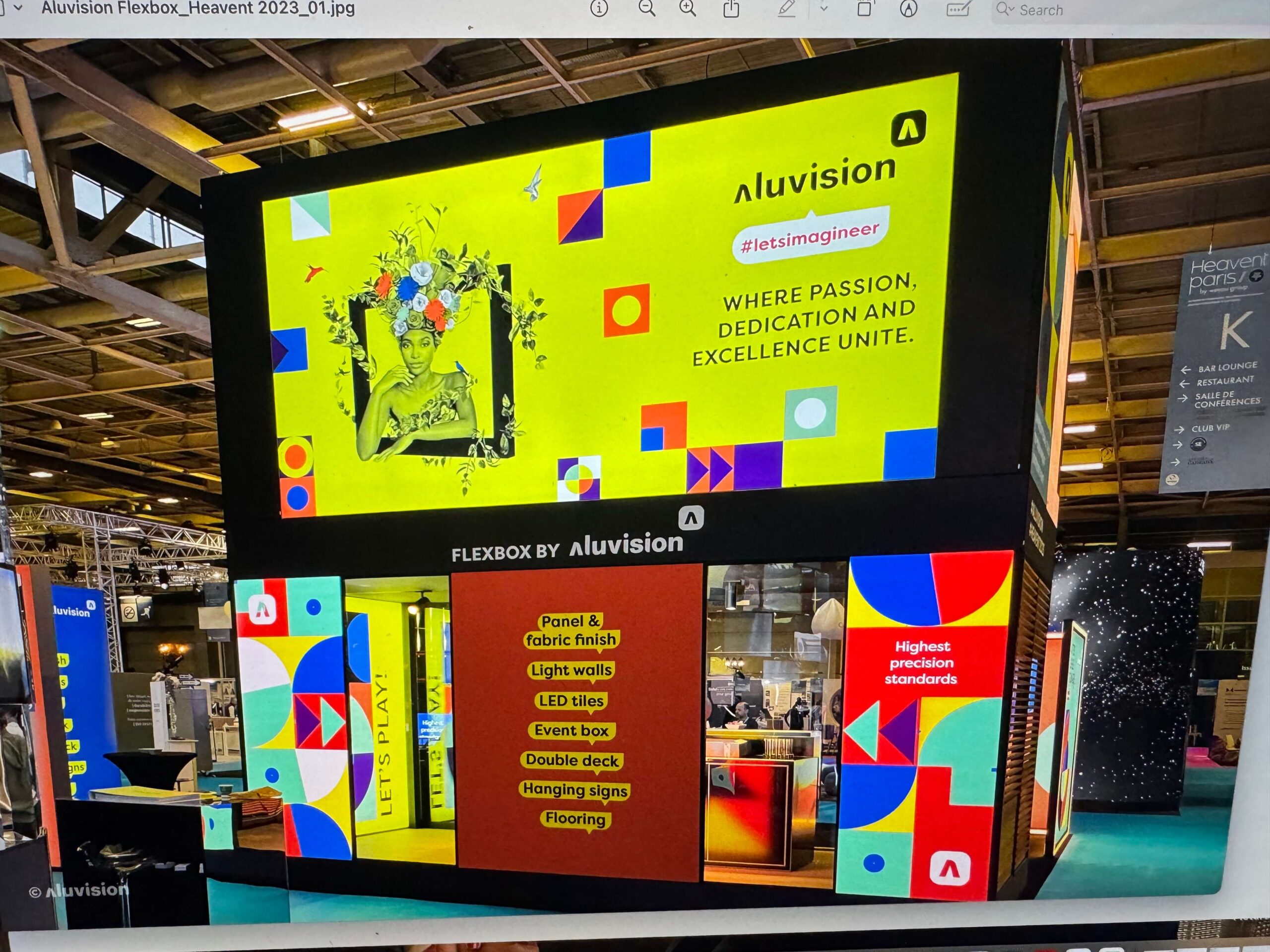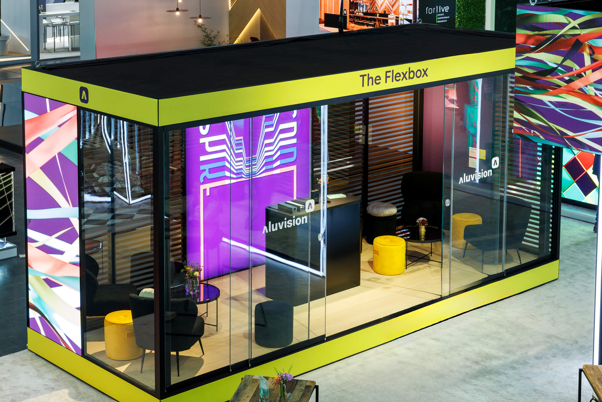 Seamless Aluvision video walls use high‑resolution Hi‑LED 55 panels to create striking straight screens, curved walls or even ceilings, while backlit lightbox displays bring your graphics to life with vibrant color and depth.