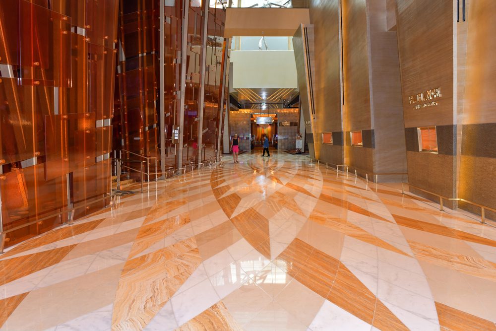 Interactive kiosks, touchscreen presentations, and LED display elements work well in ARIA’s tech-forward spaces.
